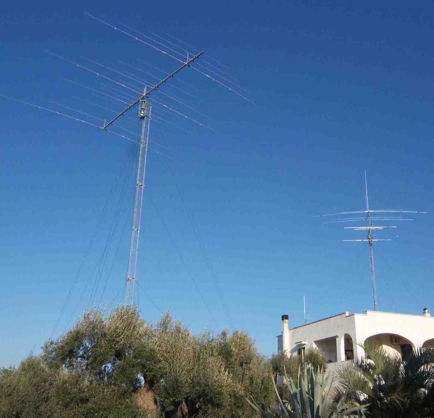 Il parco antenne HF principale è su da oltre dieci anni ormai, ma il cantiere non è mai chiuso. Esso è stato sviluppato per attività prevalente di DX e Contest. 40 - 20 -15 -10 m Yagi OB17-4 della Optibeam. Con questa antenna ho fatto un bel salto di qualità, rispetto alle antenne precedenti, la sua realizzazione ha richiesto un considerevole sforzo, in tutti i sensi….. i risultati mi dicono che ne è valsa la pena. Chi volesse conoscerne le specifiche, può visitare il sito web www.optibeam.de 30 -17 -12m Inizialmente sfruttavo la 17-4 con l'accordatore, ma senza la possibilità di usare più della potenza dell'apparato, da quando la Prosistel ha messo sul mercato la PST4-306 ne ho installata una sul tralicco T25 da 9m, sacrificando l'accoppiata di 2x6el VHF Verticale. Il risultato è superiore ad ogni aspettativa e senza limiti di potenza. |