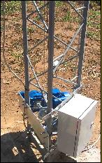 80 - 160 Su queste due bande uso due dipoli inverted V full size, con unica discesa. Il dipolo degli 80 inizialmente non copriva tutta la banda per cui ho installato uno "smart balun" Prosistel che mi consente di espandere l'uso in due sottobande commutabili via cavo coassiale Dipoli ed accessori sono autocostruiti. Tutto questo è collocato su: Traliccio 21m ProSisTel PST2100/40, con carrello ascensore controventato con monofilo Bayco. I controventi, posti a 120 gradi, sono assicurati al suolo, forando la roccia (tufo) e fissandovi con tassello chimico 3 barre filettate da 18mm collegate tra loro con un sistema di catenarie a cui sono stati assicurati i controventi. Tutto l'impianto, prima del montaggio è stato calcolato e verificato dall'Ingegnere della Prosistel. La rotazione è assicurata da: Rotore Prosistel PST71D. Altezza totale dal suolo circa 21m e circa 100m s.l.m. |